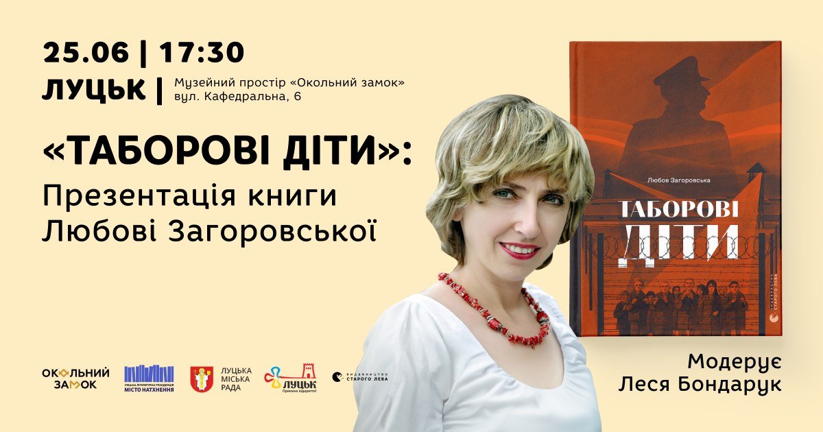 У рамках Луцької літературної резиденції «Місто натхнення» у вівторок, 25 червня, до Луцька завітає письменниця та журналістка Любов Загоровська із презентацією нової книги «Таборові діти».
