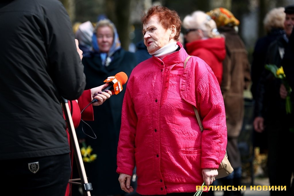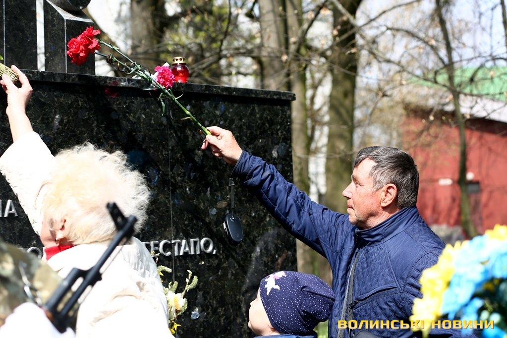 Віддати шану в’язням, замученим у нацистських концтаборах, прийшли представники міської та обласної влади, духовенство та представники громадськості міста. Сьогодні в цей день українці покладають квіти до пам’ятників закатованим в’язням та всім загиблим у роки Другої світової війни.Як відзначила член Спілки в’язнів жертв нацизму Марія Батраченко, сьогодні всі зібралися, аби відзначити пам’ятну дату – Міжнародний день визволення в’язнів нацистських концтаборів.