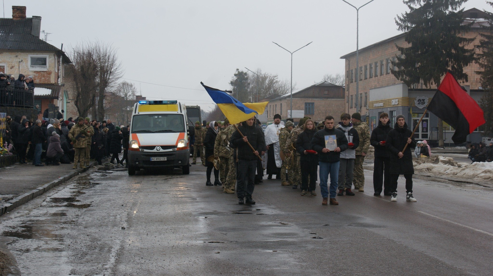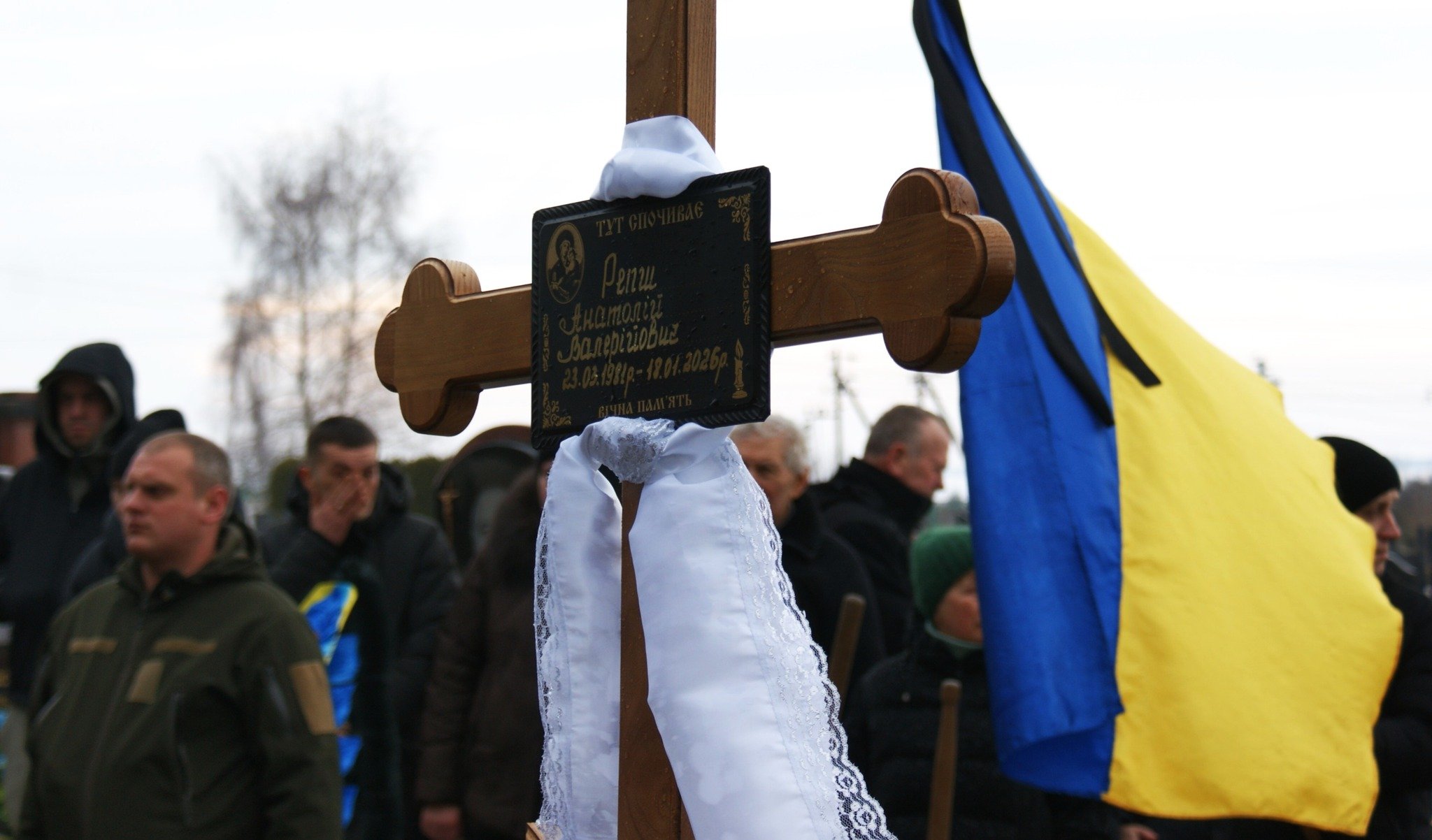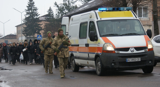 13 лютого в Рожищі прощалися із загиблим воїном Анатолієм Репшем. Коли траурний кортеж із тілом захисника їхав містом, над ним лунала повітряна тривога. Пронизливий звук сирени змішувався з плачем людей, а небо, затягнуте важкими хмарами, сипало холодним дощем, ніби розділяючи спільний біль. Громада зустрічала свого Героя навколішки – мовчки, зі сльозами та квітами.