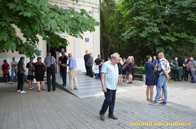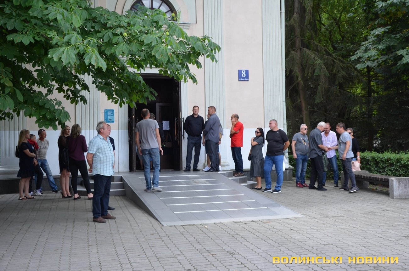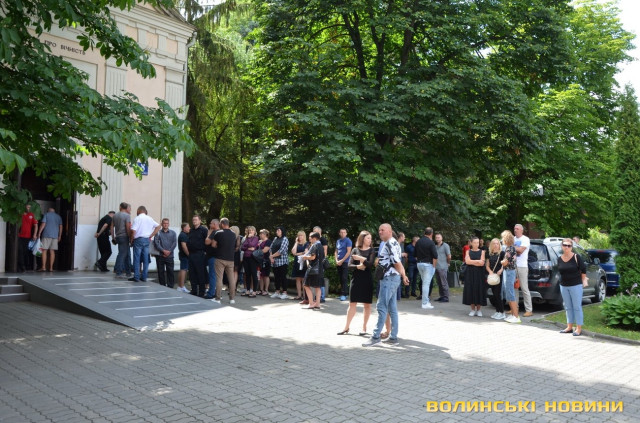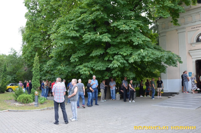 Сотні людей зібралися біля Дому панахиди в Луцьку, аби попрощатися з легендарним футболістом «Волині» Володимиром Диким.