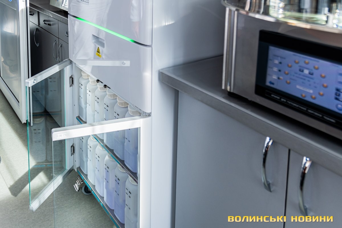 «Нещодавно ми отримали новенький кріостат-мікротом для виготовлення заморожених зрізів. Він пришвидшує діагностику у випадку хворих, які перебувають на операційному столі. Щоб визначити об’єм оперативного втручання… Вісім-дев’ять хвилин – і діагноз готовий», – прокоментував завідувач відділення Володимир Онищук.Лікар-патанатом Людмила Соловей додала, що раніше лаборанти власноруч фарбували гістологічні препарати, нині ж цю роботу вдалося повністю автоматизувати завдяки автостейнеру.