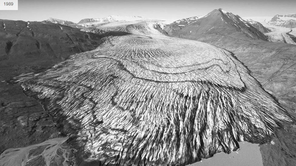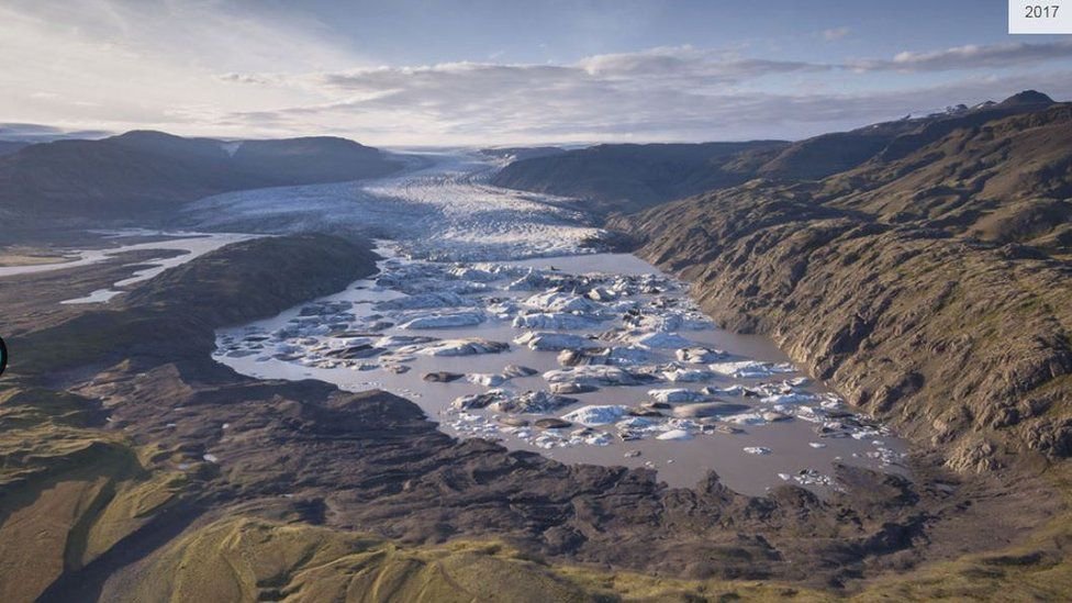Автор сучасних світлин Кіран Бакстер з Університету Данді в Шотландії зазначив, що побачив приголомшливу різницю за дуже короткий проміжок часу. Він опублікував фото льодовика Скалафеллсйокудль, порівнявши його з даними 1989 року, та показав, як з 1982 року змінився льодовик Хоффеллсйокудль.Льодовик Хейнабергскйокуль у 1989 році Льодовик Брейдамеркурйокудль у 2019 році Льодовик Хейнабергскйокуль у 1989 роціЛьодовик Скалафеллсйокудль у 1989 роціЛьодовик Скалафеллсйокудль у 2019 роціЛьодовик Хоффеллсйокудль у 1982 році Льодовик Хоффеллсйокудль у 2017 році.