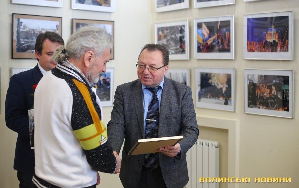 Виконувач повноважень Луцького міського голови Григорій Пустовіт подякував фотохудожнику за виставку і величезну роботу, яку той здійснив, зберігши для історії та поколінь те, що передати словами і документами не можна – яскраві миті революції, її внутрішній дух. Оскільки час віддаляє ці події, їхні деталі починають забуватися. Для того, щоб відчути дух, характер та енергетику Революції Гідності, напругу, яка була на Майдані, достатньо поглянути на ці світлини. Це миті боротьби, протистояння, енергії. Автору виставки Григорій Пустовіт вручив подяку за його активну громадянську позицію та популяризацію сучасного фотомистецтва.