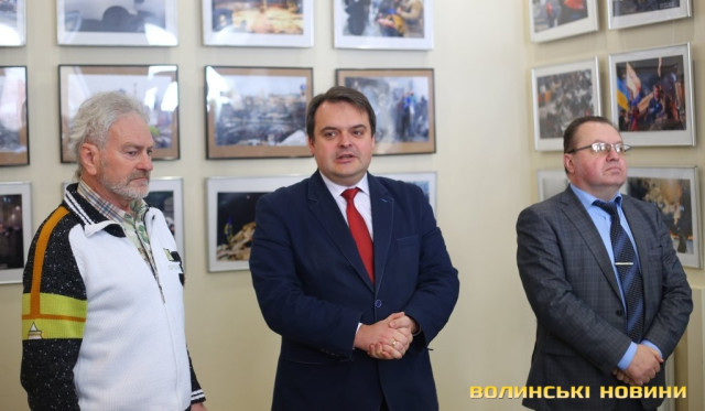Заступник директора департаменту культури міськради Андрій Ломага зазначив, що сьогодні в Луцьку вітають безпосереднього учасника Революції Гідності. Він, працюючи на Майдані як журналіст та фотограф, напрацював серйозний доробок, що є не лише творчим досягненням, а й доказовою базою подій, які відбувалися тоді в Києві. А сама фотовиставка, як зауважив Ломага, покликана нагадати про події, що відбувалися чотири роки тому і повернути в серця та душі українців ті почуття.