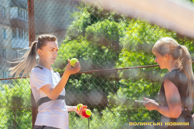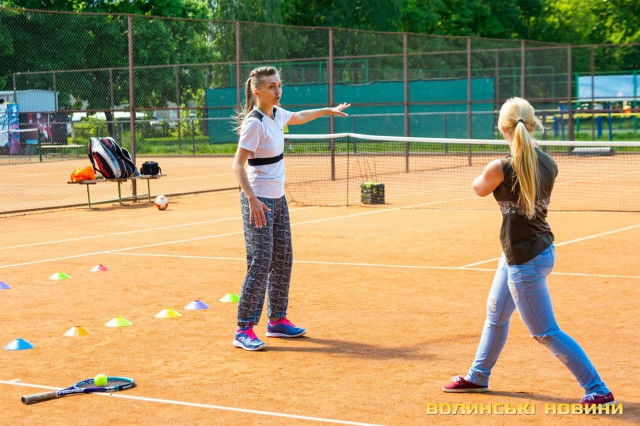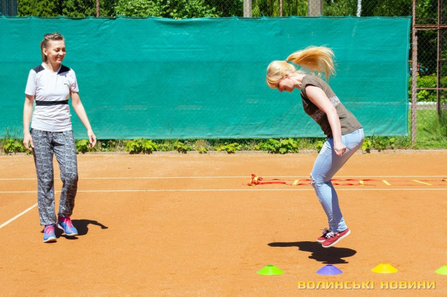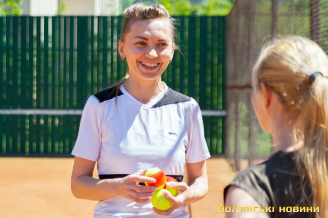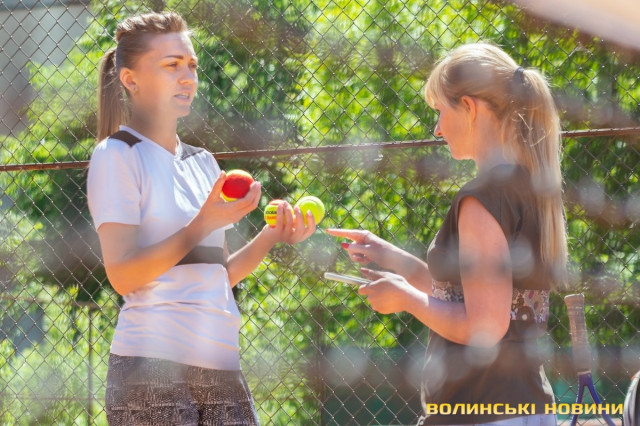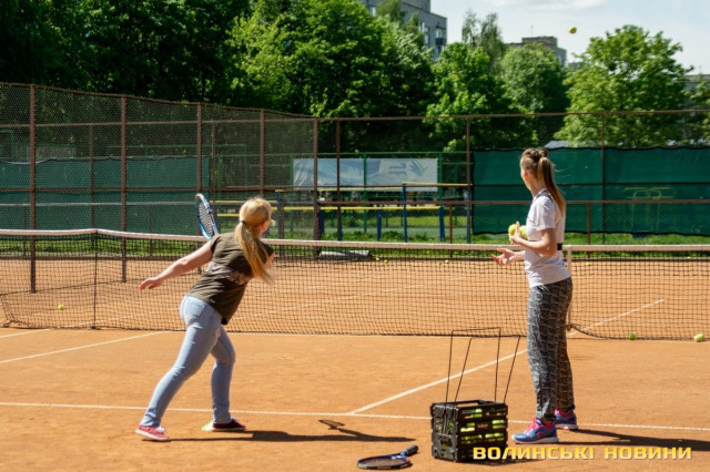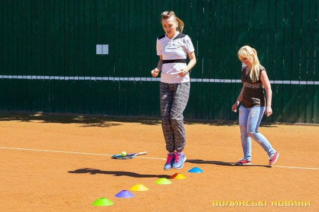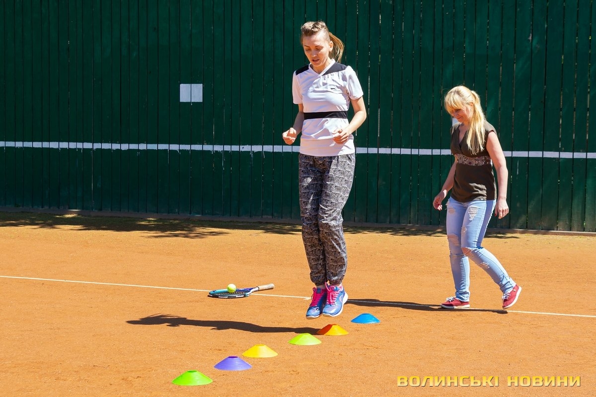 Тож я, як слухняна учениця, повторюю за нею вправи, підстрибую, бігаю поміж кольоровими фішками та драбинкою – чисто тобі веселі старти!«Ми працюємо за методикою Play&Stay Tennis 10S Програми ITF (Міжнородної тенісної федерації). Вона полягає в тому, що залежно від віку, є відповідна вага м’яча, – розповідає тренерка. – М’ячів для дорослих дітям не даємо. Починають із легких. Це червоний рівень. Далі йде оранжевий рівень, після нього – зелений. У всіх цих м’ячів різний відскок».Навантаження під час тренувань для кожного учня – індивідуальні, відповідно до його фізичних даних.