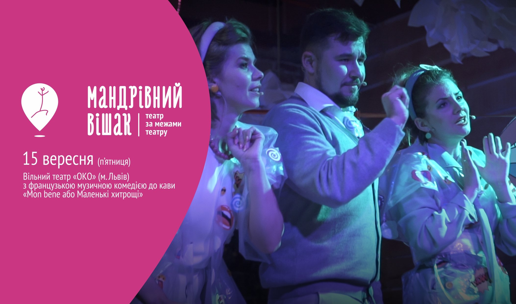 Французька музична комедія до кави «Mon bene або Маленькі хитрощі», яку привезуть актори до Луцька на «Мадрівний вішак» — це карколомна сімейна комедія. Естетика поп-арту, музика наживо,і ви в будь-який момент із глядача, який сидячи за столиком попиває каву та спостерігає за перипетіями на майданчику, можете перетворитися… на актора. Інтерактивність вистав – головна фішка театру «ОКО»!