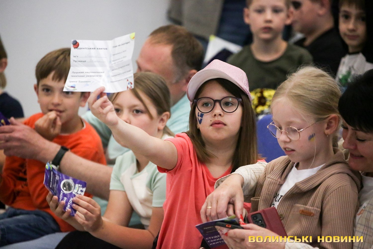«Дуже важливо робити розваги дітей розумними, формувати в них інтелектуальне майбутнє та відлучати від гаджетів, якими вони так захоплюються сьогодні», – переконана Катерина Шкльода.Ректорка ЛНТУ Ірина Вахович зауважила, що такого емоційного дня в університеті не було давно. Вона побажала дітям та їхнім батькам гарного настрою у стінах вишу.Після вітальних слів діток поділили на три команди і вони змагалися у батлі патріотів, відповідаючи на питання, пов’язані з Україною. А згодом вони завітали у техноляндію, де вишивали, малювали, ліпили, гралися з роботами та побували у віртуальній реальності і віртуальному планетарії.Пожежники, своєю чергою, влаштували квест для юних студентів, під час якого вони проходили різноманітні перешкоди.А насамкінець кожен з юних студентів отримав подарунки від Фонду Ігоря Палиці «Тільки разом» та Луцького національного технічного університету.