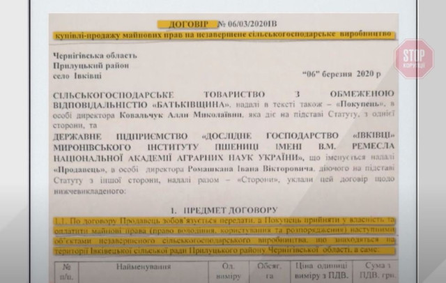 - У підприємства була господарська діяльність, надавалися послуги. Наскільки мені відомо, є договір між ДП ДГ «Івківці» та агрофірмою «Батківщина» про купівлю незавершеного виробництва на озиму пшеницю й ріпак.