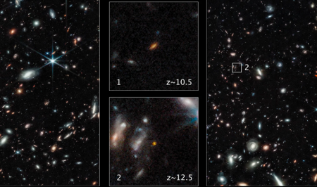Космічний телескоп NASA імені Джеймса Вебба виявив дві нові галактики. Одна з них претендує на звання найдавнішої та найвіддаленішої з відомих – вона утворилася через 350 мільйонів років після Великого вибуху. Друга галактика молодша, вона сформувалася через 450 мільйонів років після нього.