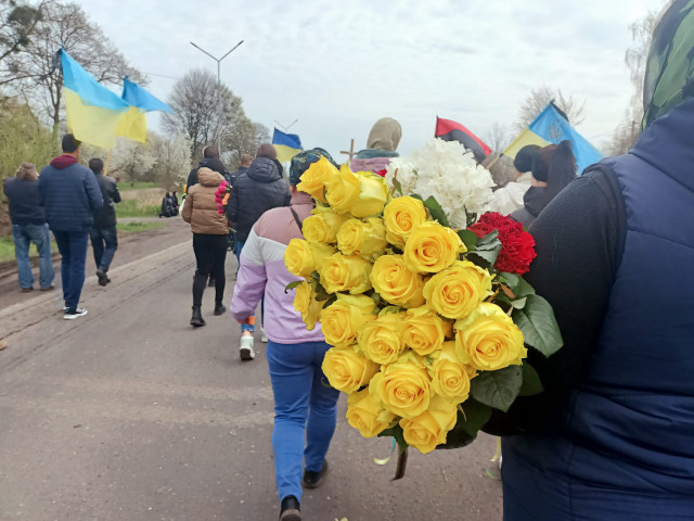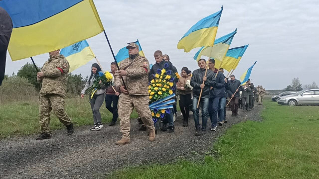Сотні людей з квітами прямували жалобною ходою до рідної оселі Сергія у селі Звірів, щоб віддати останню шану захиснику.