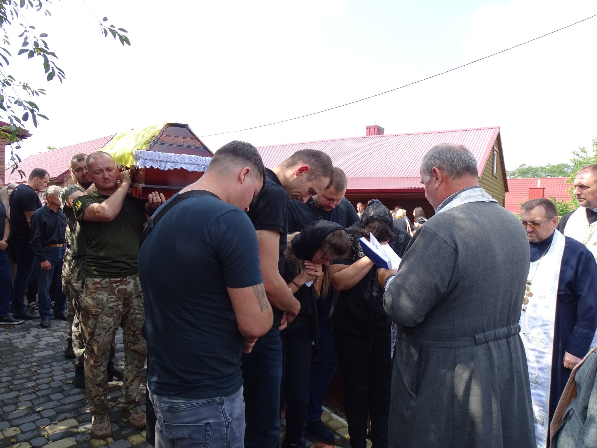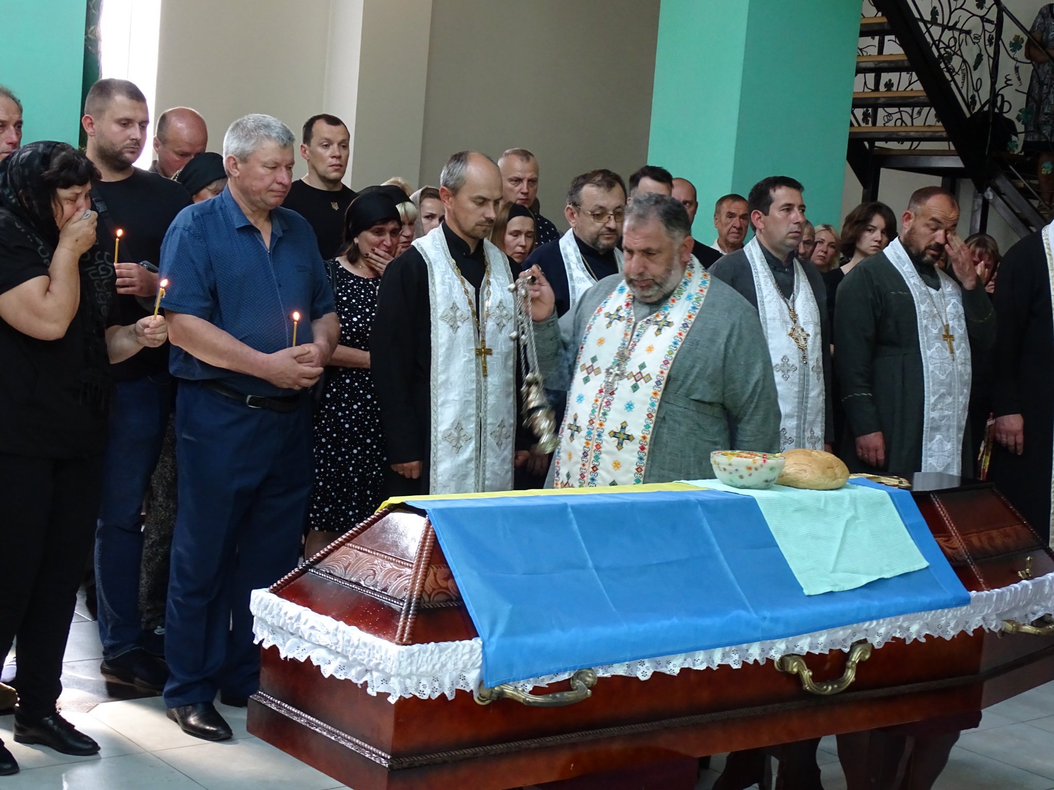 Від рідного дому до місця земного спочинку вулицями рідного селища військові на плечах несли загиблого воїна під звуки духового оркестру. За душу Олександра підносилися молитви. Чин поховання у Свято-Троїцькому храмі звершив митрофорний протоієрей о. Миколай спільно з духовенством деканату.
