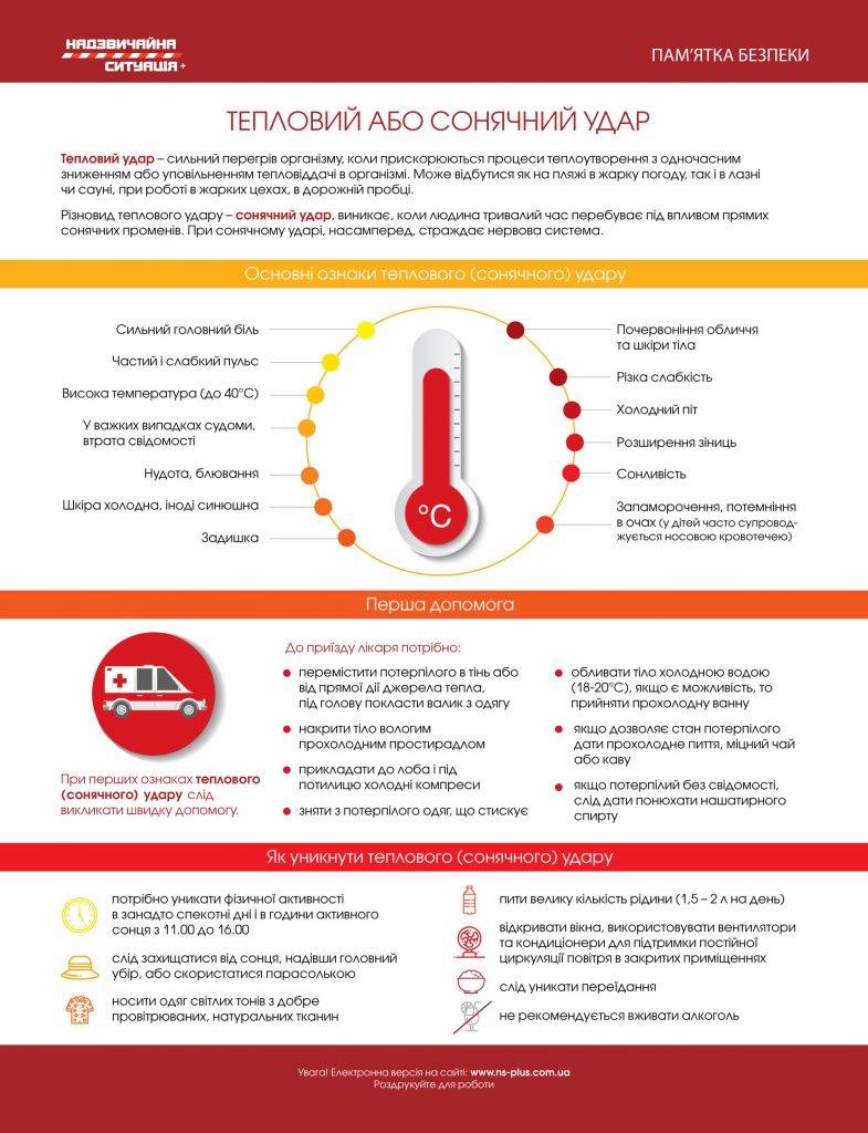 Пам’ятку безпеки на випадок теплового чи сонячного удару опублікувало спеціалізоване видання «Надзвичайна ситуація+».