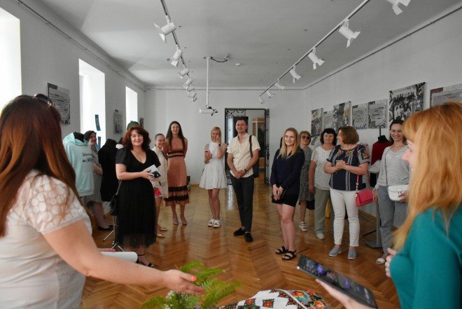 Також вона підкреслила, що популярним напрямком психосоціальної підтримки у сфері культури є терапія мистецтвом. Тож учасники заходу ознайомилися з експонатами виставки «Свій/Чужий. Історії про...». Еспозиція розрахована на різну аудиторію та містить традиційні українські весільні вишиванки, дитячі малюнки, вбрання нацгвардійця та воїна 3-ої штурмової бригади ЗСУ, а також розпізнавальні знаки представників різних професій.«Виставка про нас самих», – зазначила працівниця закладу.
