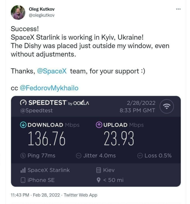 Starlink — here. Thanks, @elonmusk pic.twitter.com/dZbaYqWYCf