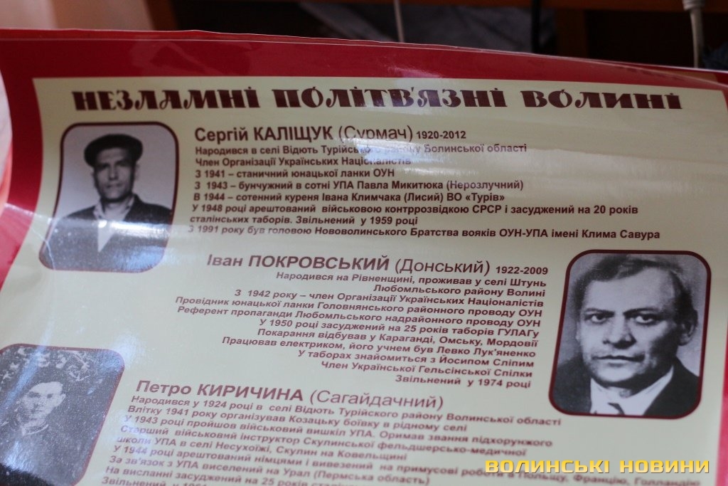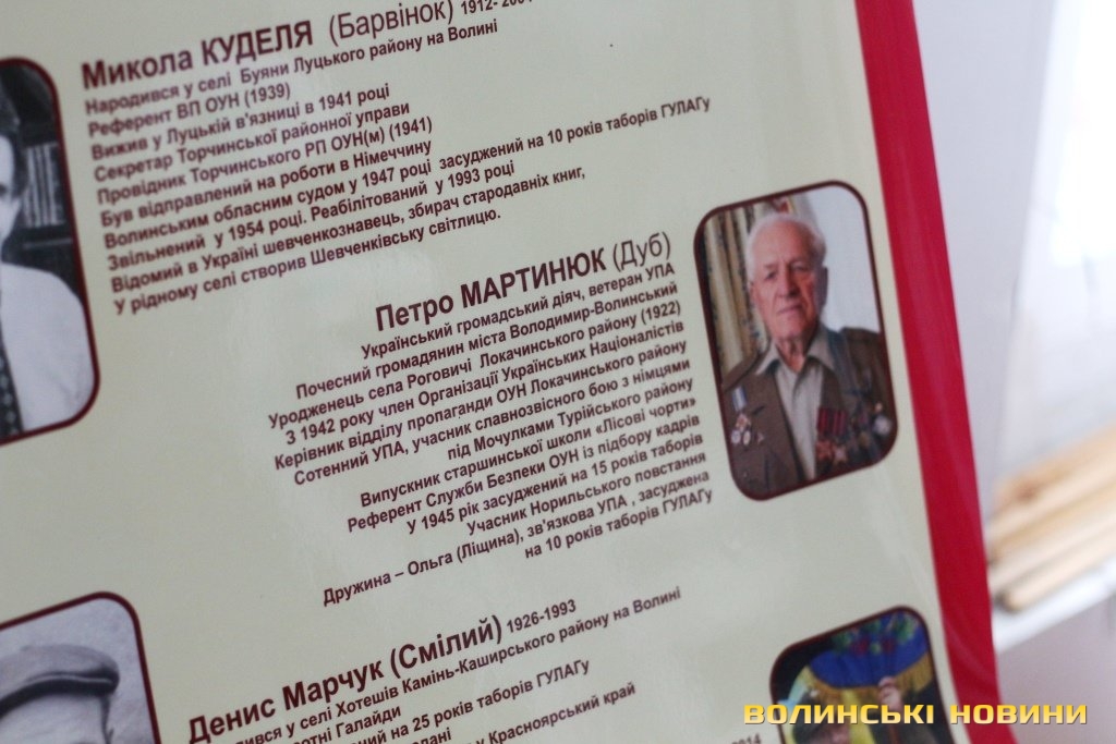 Любов Стельмащук розповіла, що її мамі вже виповнилося 90 років, але вона добре пам’ятає непрості часи, вояків УПА та вивезення родин українців з рідного краю. Її рідні, родина Марчуків, проживала у селі Хотешів Камінь-Каширського району та була вивезена до Сибіру, у далекий Красноярський край. Батьки жінки допомагали повстанцям, які зупинялися у них на хуторі, а дядько став зв’язковим УПА. За це дід та дядько отримали максимальний термін таборів – 25 років, а родину вивезли на спецпоселення. Сьогодні світлини родини могли оглянути учасники зібрання.
