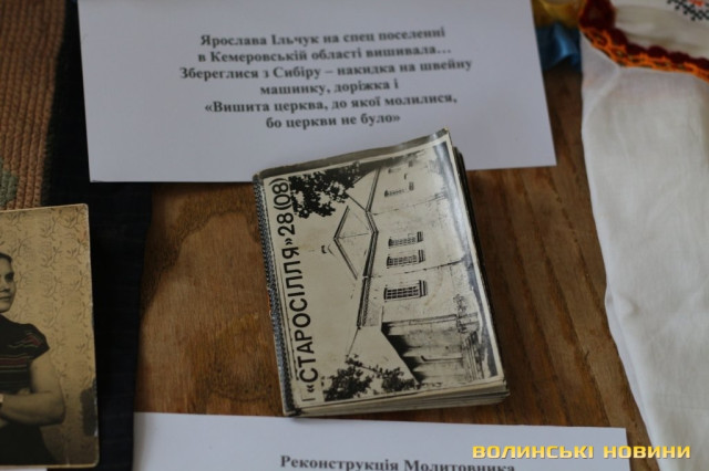 Під час зібрання демонстрували світлини та особисті речі тих, хто був примусово виселений з рідної Волині. Серед них – вишите зображення церкви, на яке молилися виселені у Кемеровську область, оскільки церкви там не було. Демонстрували також мініатюрне Євангеліє 1914 року випуску, картину, вишиту на засланні, фотокопію молитовника, яким користувалася родина репресованих.