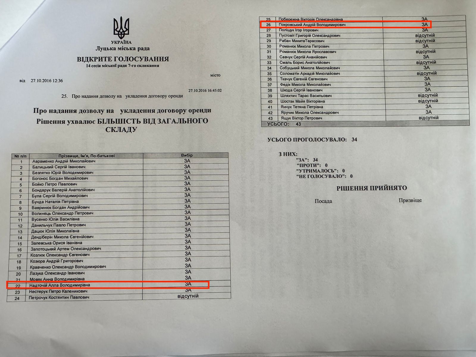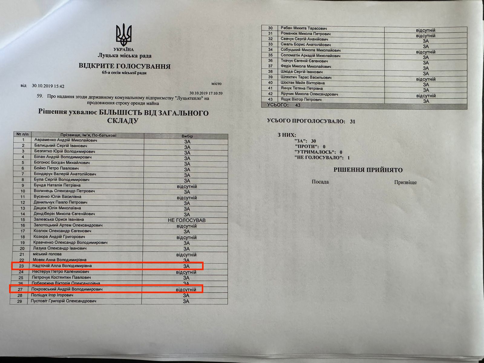 А тепер про щирість і політичну відповідальність. Уперше місто взяло в оренду котельню на вулиці Карбишева у 2016 році. Дозвіл на це надали депутати Луцької міської ради. Відповідно до результатів голосування, Алла Надточій, яка тоді теж була депутаткою, проголосувала за. Підтримав, до слова, це рішення й тодішній депутат Андрій Покровський. Останній – засновник громадянського руху «Свідомі».У жовтні 2019 року депутати голосували за продовження договору оренди котельні на Карбишева. «Свідома» Алла Надточій проголосувала за. Андрій Покровський був відсутній на сесії.У липні 2020 року депутати знову голосують за продовження договору оренди котельні. Голосування відбувалося дистанційно. І цього разу депутатка Алла Надточій віддала свій голос за. Навпроти прізвища Андрія Покровського – порожня клітинка.Квітень 2021 року. Знову голосування за продовження оренди котельні, що на вулиці Карбишева. Це вже голосування нині чинного депутатського складу Луцької міської ради. Як бачимо, всі депутати, за винятком одного, підтримують продовження оренди котельні. За голосує вся фракція руху «Свідомі». Підтримують продовження оренди і всі депутати фракції партії «Європейська Солідарність».Що ж тепер? Нині «свідомі» депутати виступають проти продовження оренди котельні. Кажуть, що її власник торік невиправдано підняв плату за оренду (а це додаткові витрати з бюджету), а саме продовження оренди – кабала для лучан.