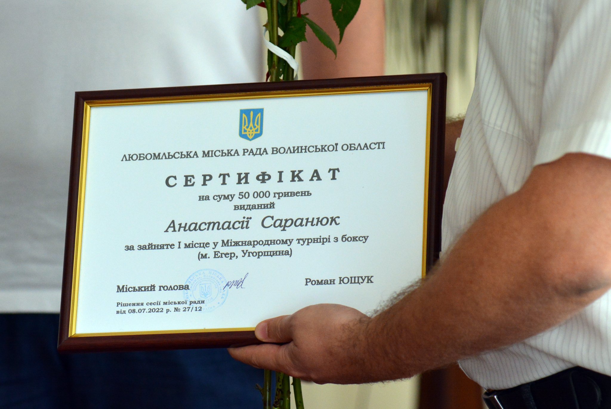 «Сьогодні вашими зусиллями Україна переможно звучить на світовій спортивній арені. І це теж неабиякий внесок у нашу спільну перемогу над ворогом. Тож бажаю підкорити ще не один п’єдестал!» – зазначив він.Старання спортсменок оцінили і в Любомльській міській раді. Голова громади Роман Ющук вручив переможницям сертифікати на суму 50 тисяч гривень.