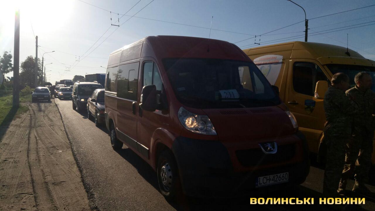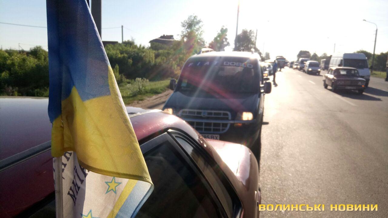 Колона з більш ніж десяти авто зустріла тіло полеглого під час обстрілу в зоні бойових дій волинянина Олега Пушкарука. Від Цуманського перехрестя колона рушила до Нововолинська через Луцьк.