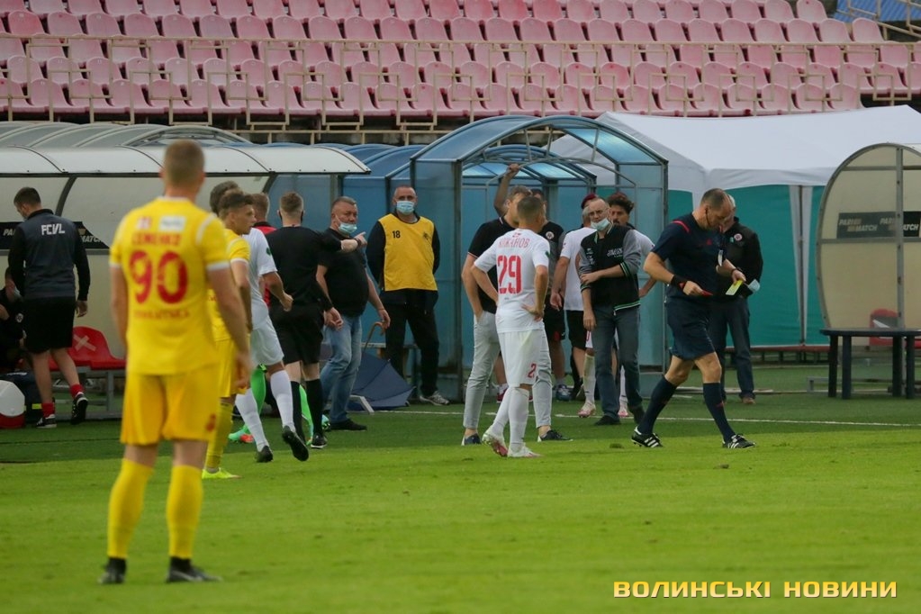 Очевидно, в роздягальні волинян відбулася серйозна розмова, бо вони вийшли на поле раніше закінчення перерви і змушені були чекати арбітрів та футболістів «Інгульця».