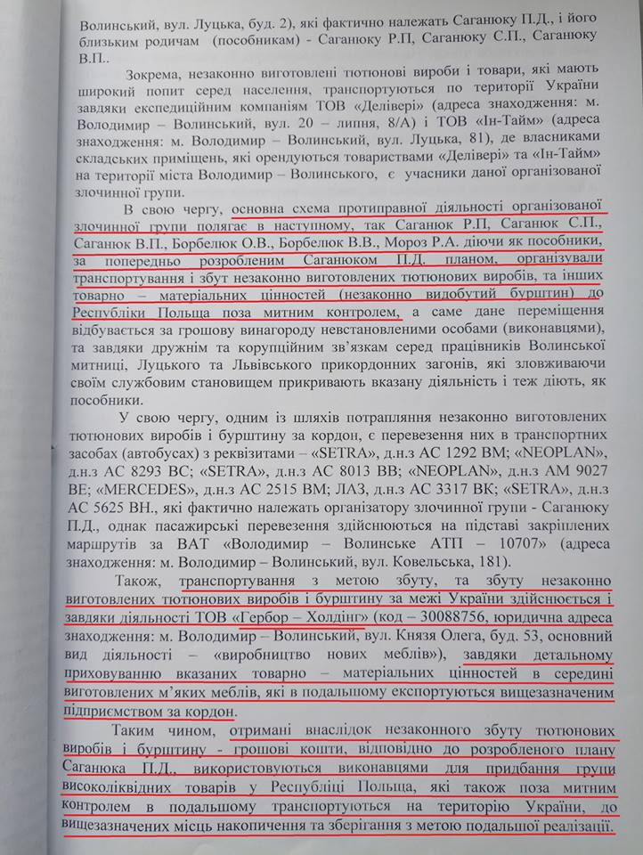 «Здавалося б непов’язані теми вивезення сигарет і бурштину в ЄС і незаконне ввезення товарів в Україну під виглядом порожніх бусів насправді – ланки одного ланцюжка і результат роботи найбільшої на Волині контрабандної ОЗГ мера Володимира-Волинського Петра Саганюка, який, до слова,з 1998 року обіймав цю посаду п'ять разів поспіль», - підсумував журналіст.