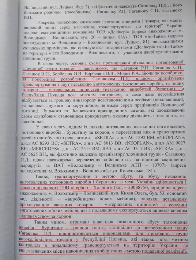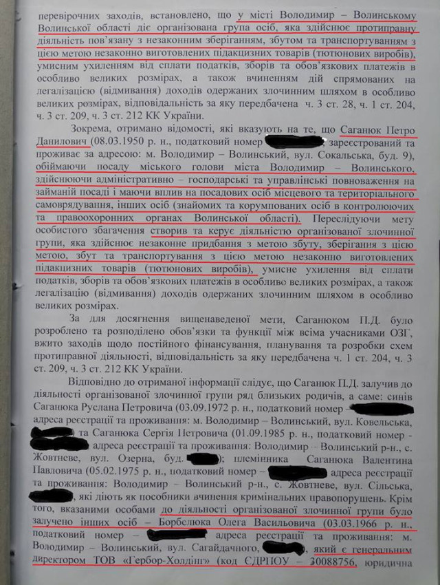 Все б в цій новині нічого, якби не той факт, що згідно матеріалів кримінального провадження ЕРДР №42015000000001072 ТОВ «Гербор-Холдінг» з 2015 року входить до складу злочинного угруповання Петра Саганюка, мера Володимира-Волинського», - йдеться у дописі.