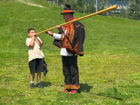 Щовихідних в центрі гірського містечка грає справжній гуцульський трембітар. За древньою карпатською традицією, він сповіщає, що сонце в зеніті.