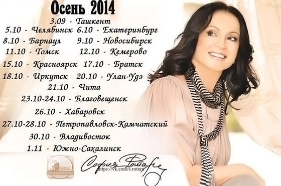 А от народна артистка України Софія Ротару зовсім не приховує своїх виступів на сценах окупанта. Досить лише подивитися на афіші її концертів в офіційній групі "ВКонтакті", і стає зрозуміло, на який хліб живе співачка.