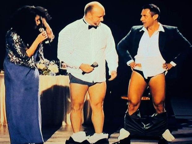 Ну так Потап походу "голубя мира" на сцене и выпускал - раз штаны снял. :)