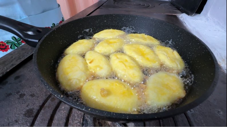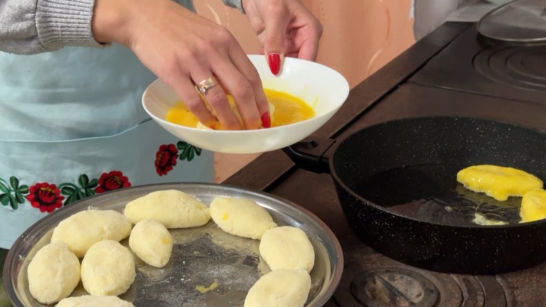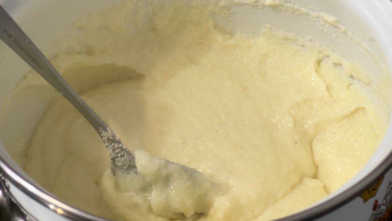 Читати ще: Щітки з трави, манники та вибілювання полотна: культурна спадщина Волині поповнилась новими елементамиДля приготування манників спочатку треба зварити манну кашу. На півлітри молока жінка дає 6 столових ложок манки.«Манку до молока потрібно легенько додавати, щоб не було грудочок. Манна каша має бути дуже густа, тому що вона буде слугувати як тісто, з якого робитимемо пиріжки, а сир додається як начинка», – говорить Оксана Яцик.За словами господині, на порцію потрібно півлітри молока, 6 столових ложок манної крупи, сир, цукор, ванільний цукор, дрібка солі до манки, три яйця та борошно.