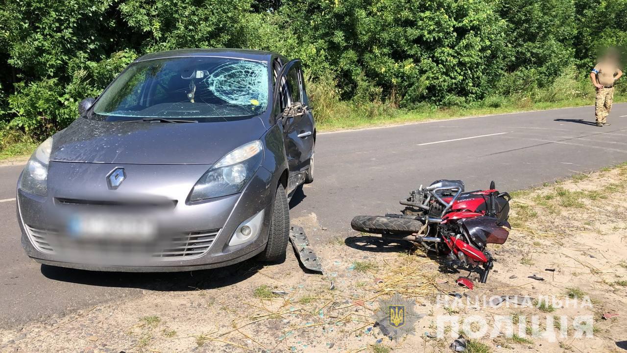 ДТП сталася у п’ятницю, 5 серпня, в селі Грудки Камінь-Каширського району: зіткнулися мотоцикл Lifan та автомобіль Renault.
