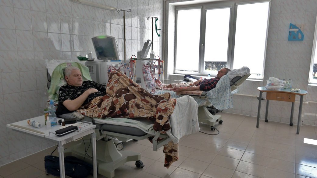 Нині на постійному гемодіалізі в Луцькій міській клінічній лікарні перебуває 79 хворих, розповів завідувач відділення інтенсивної терапії та амбулаторного гемодіалізу Олександр Бойко. З його слів, щоразу процедура очищення крові триває чотири години, а пацієнти приходять у три зміни.«Є пацієнти навіть у нас, які більш як 20 років на діалізі. Основний контингент хворих, які зараз у нас перебувають, – старші за 50 років, дуже малий відсоток – вік від 20 до 30 років. Це пов'язано зараз з тим, що більшість молодих пацієнтів із нирковою недостатністю зробили пересадку», – пояснив медик.У листі очікування на пересадку нирки наразі є 20 пацієнтів відділення інтенсивної терапії Луцької клінічної лікарні, додав завідувач.Кілька разів на тиждень проходить процедуру гемодіалізу 54-річна Лариса Киричук. Вона розповіла, що кілька років тому у важкому стані через ниркову недостатність потрапила до цього відділення.