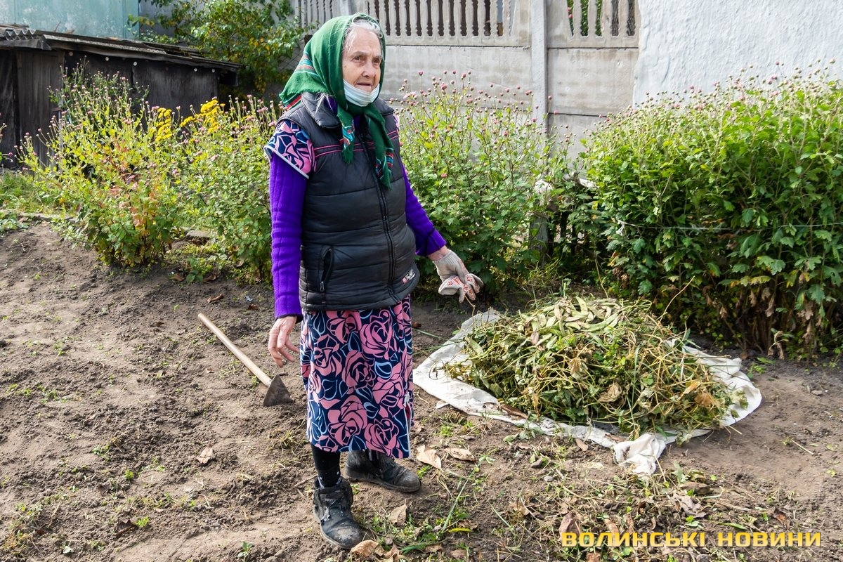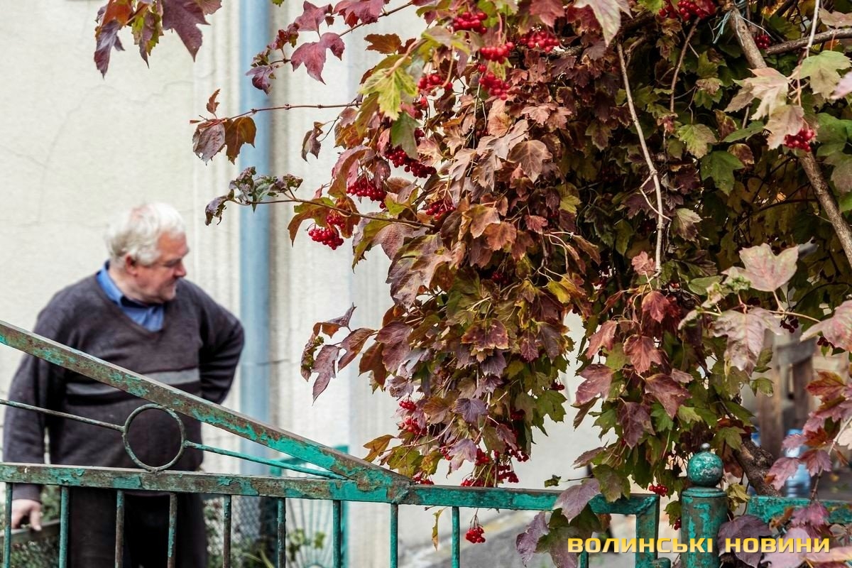 Луцьку пощастило на осінню красу. Якщо пройти буквально кількасот метрів із центру вглиб вузьких старих вуличок, створюється враження, що ти потрапив у якесь казкове задзеркалля: на зміну міському гамору приходить благородна тиша. Лишень шурхіт листя під ногами годен її трохи сполохати.…Біля одного з приватних обійсть у квітнику порається пані Софія Гнатюк. Їй – 82. Маленька, сухенька, майже прозора. А в очах – стільки доброти й тепла, що, здається, його стане, аби зігріти пів світу. Про таких кажуть: з її рук навіть суха гілка, посаджена в прісну землю, прийметься й зацвіте. Вона зграбно орудує граблями, складає на купку сухе листя та гілочки. Кущики хризантем акуратно підв’язані, деякі вже буйно цвітуть, а деякі ще тільки підглядають за нами жовтими зіницями пуп’янків.«То я не тут живу, а неподалік, он у тому будинку, в квартирі, – показує на багатоповерхівку. – А на балконі що? Хіба кілька вазонів посадиш та й усе. Маю алое та каланхое, за ними й доглядаю, вони іще й лікувальні, не раз виручали і мене, і дітей, і внуків, і навіть правнукам сопельки лікували. А тут моя родичка живе, вона хворіє і не має як біля цього всього ходити. Та й каже, що не любить. А я біля землі працювати дуже люблю».
