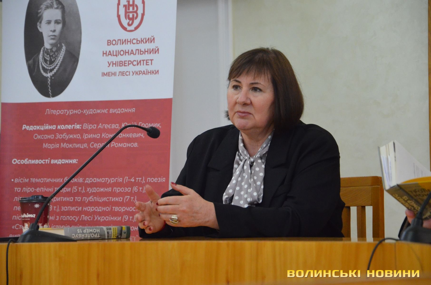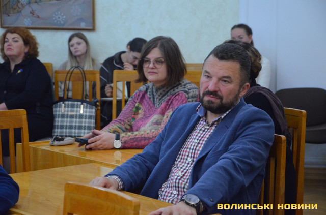 «Радий вітати пані Наталку у Волинському національному університеті. Пригадую, як зустрівся із нею в Києві. Ми із професором Сергієм Романовим представляли збірник творів Олени Пчілки в Національній бібліотеці імені Вернадського. З-поміж гостей була одна симпатична жінка, якою, як ми потім впізнали, виявилася Наталка Діденко. І ми відчули згусток доброї та світлої енергетики від неї. І сподіваюся, ми зможемо закохати пані Наталку в Луцьк», – звернувся Юрій Громик.На початку Наталія Діденко розповіла цікаву історію про лучан, що трапилася з нею перед зустріччю.