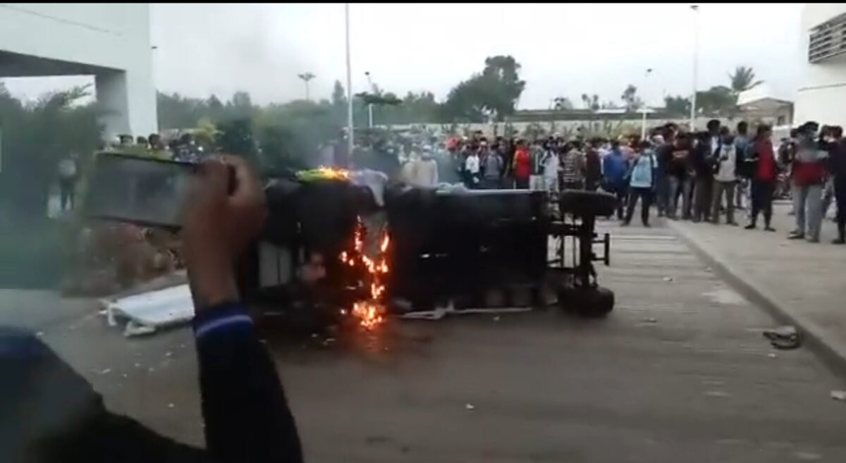 Alleging unpaid salaries, workers vandalize iPhone manufacturing unit near Bengaluru pic.twitter.com/pbW6xAwA0I