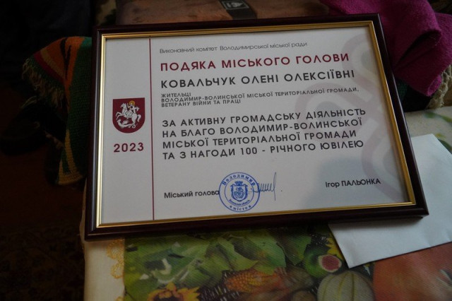 Прозвучали слова вітань і на адресу Ніни Чих – доньки Олени Олексіївни, яка цього ж дня відзначає 70-річний ювілей разом із сестрою-двійничкою Зоєю, яка мешкає у Рівному. Пані Ніна повернулась до міста свого дитинства із Калуша, де упродовж багатьох років викладала в училищі культури та мистецтв, аби доглядати за мамою.Олена Ковальчук каже, що сама не йме віри тому, що їй судилось дожити до такої поважної дати, проте вважає, що все у руках Божих, який, мабуть, неспроста дарував їй таке довге життя. За своє століття, яке провела від самого народження у рідному місті Володимирі, жінці довелось пережити чимало: і кілька окупацій владою різних країн, і воєнне лихоліття, яке перервало її навчання у педагогічному коледжі, та інші історичні перипетії.Читати ще: 27 років працювала у лікарні: волинянку привітали з 90-річним ювілеєм