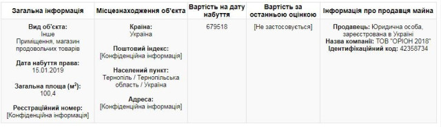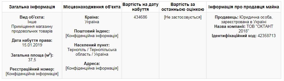 У Тернополі Сергій Мартиняк купив три магазини (37,5; 56 та 100 квадратів).
