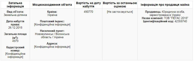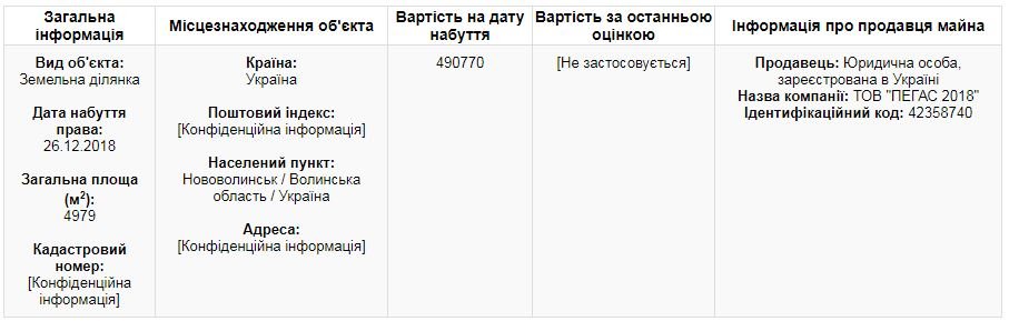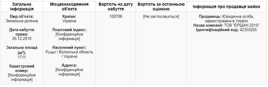 Наприкінці 2018 року він також придбав 17 соток у Луцьку та півгектара землі в Нововолинську.