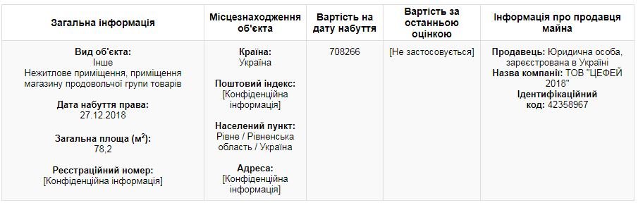 Також придбав торгово-офісне приміщення в Нетішині Хмельницької області та по магазину у Рівному і Нововолинську.