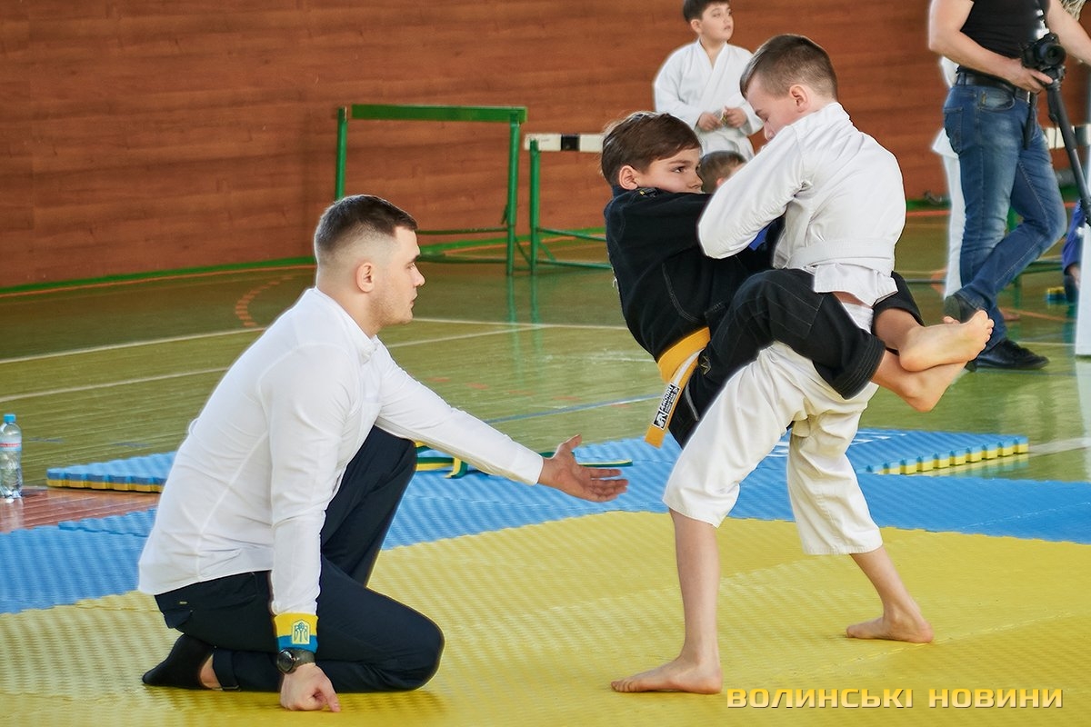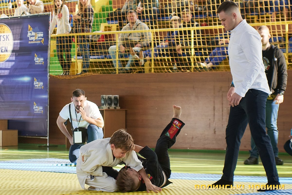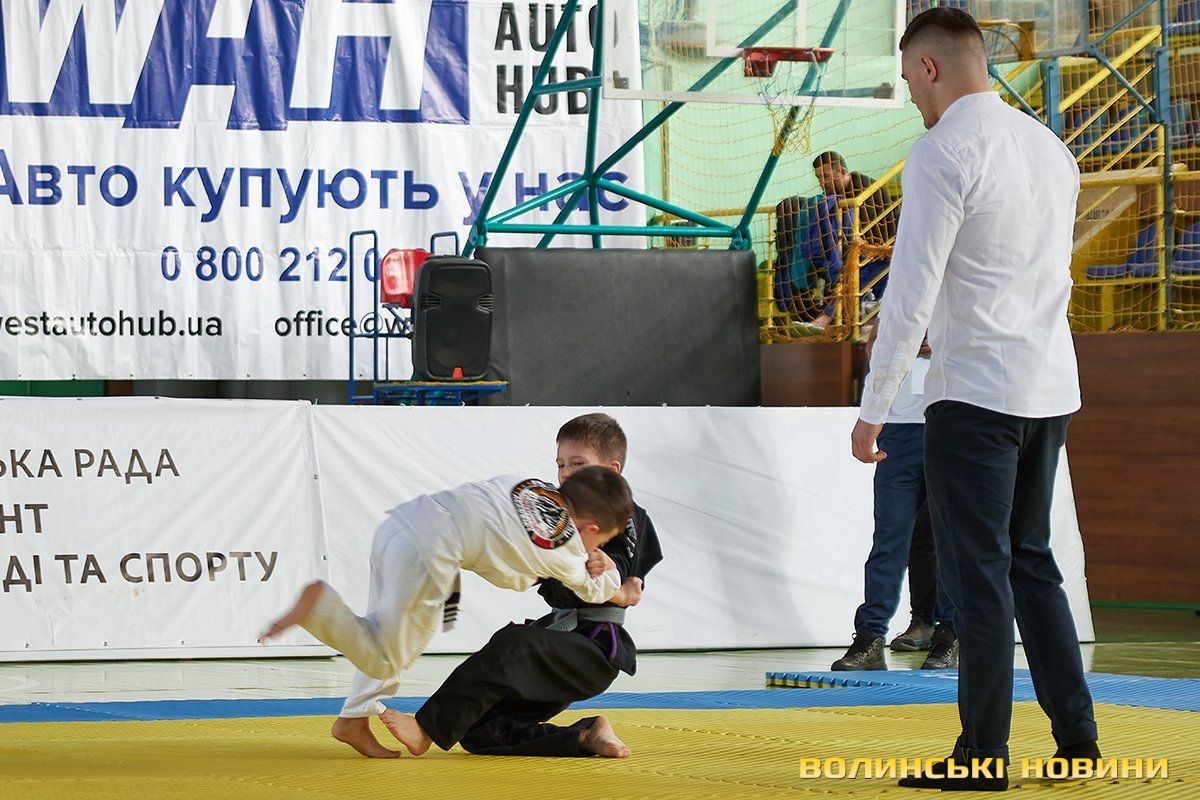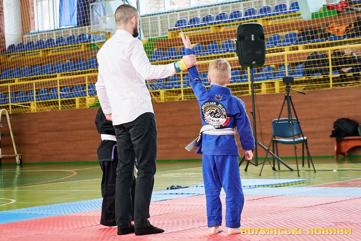 Підготовка до турніру розпочалася ще вчора — спортсмени проходили попереднє зважування. Сьогодні ж, після низки офіційних процедур, змагання стартували з поєдинків наймолодших учасників — 4-річних хлопців. Однак, не зважаючи на юний вік, пристрасті навколо двобою вирували зовсім не дитячі. Варто зазначити, що бразильське джиу-джитсу під силу абсолютно різним людям. Свідченням цього є як вік учасників турніру: від 4 і за 40 років так і значна кількість спортсменок жіночої статі.Загалом продемонструвати свої вміння у бойовому мистецтві та поборотися за нагороди у Волинській обласній дитячо-юнацькій спортивній школі зібралося більше 250 атлетів. Приємно, що Луцьк представляють майже 60 спортсменів. Це дає серйозні підстави сподіватися, що команда увійде у загальний призовий залік.Масштабну подію національного рівня організували спортивний клуб GARDA спільно з Jiu Jitsu League Ukraine — Лігою джиу-джитсу України за підтримки компанії WEST AUTO HUB, Департаменту сім'ї, молоді та спорту Луцької міської ради та Відділу з питань фізичної культури та спорту Волинської облдержадміністрації.Після перших серій поєдинків, спортсмени отримали нагоду трохи перепочити, адже організатори оголосили урочисте шикування для офіційного відкриття турніру та привітання його учасників. Президент Федерації панкратіону та грепплінгу Волинської області засновник клубу «GARDA» і головний організатор змагань Михайло Савчук подякував представникам різних куточків України, які завітали на турнір. Він підкреслив, що цим зайвий раз стверджується ідея про те, що спорт це — універсальний інструмент єднання.Перший заступник міського голови Луцької міської ради Григорій Недопад також привітав лучан та гостей місті зі спортивним святом. Він наголосив, що Луцьк вкотре стає активним осередком спортивного життя України. Почесний гість пригадав гасло, яке запам'яталося йому ще з часів відвідування спортивної школи майже 20 років тому: «Спорт — здоров’я. Рух — життя!». Не оминув увагою Григорій Недопад і спортсменок-дівчат: напередодні 8 березня він побажав їм перемог.«Фішкою» відкриття стала поява на татамі лицарів у повних бойових обладунках, які провели поєдинок на мечах. Так — оригінально спортсменів привітали учасники клубу середньовічного бою «Айна Бера». Лицарі також були присутні на церемоніях нагородження, чим додали особливого колориту офіційній процедурі. До того ж, усі бажаючі отримали нагоду зробити вирізні світлини зі щитами та мечами.Після урочистого відкриття чемпіонату поєдинки продовжилися. Організатори нагадують, що на глядачів чекає ще багато цікавого, адже змагання продовжаться до вечора. Їх формат передбачає одночасне проведення двобоїв на трьох татамі та нагородження учасників у різних групах: залежно від віку, статі, кольору поясів. Це робить чемпіонат надзвичайно видовищним, оскільки глядачам не доводиться нудьгувати. До того ж, із другої половини дня виступатимуть досвідченіші спортсмени, тому поєдинки будуть багатшими на тактичні хитрощі та технічні прийоми.