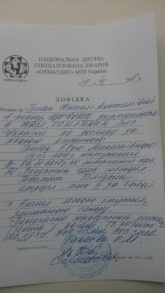 З народження Єва знаходилася на лікуванні в Луцькому Неонатальному Центрі. Зараз лікується в НДСЛ "ОХМАТДИТ"м.Київ.