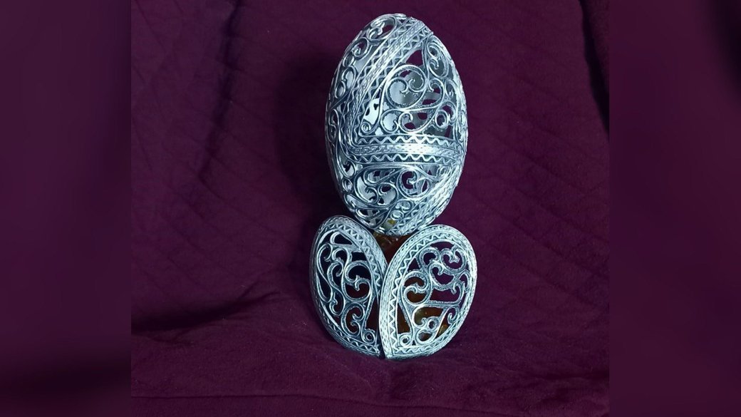 «Насправді – це не срібло, але виглядає дуже подібно. Яйце я покрив ювелірним алюмінієм та сплавом нержавіючою сталі, вийшло дуже подібне на срібло», – каже майстер.
