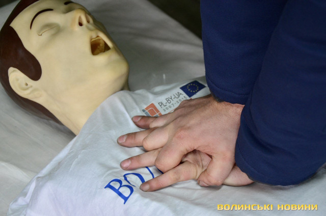 «Якщо розпочався ракетний обстріл, ми маємо кілька секунд, аби сховатися. Удома найкраще сховатися в коридорі, адже там немає вікон і можливості для рикошету. Якщо ми перебуваємо на вулиці, можна сховатися за парканом, деревом, високим бордюром. Не можна ховатися за автомобілями чи, наприклад, купою щебню або бігти до будинків. Голову прикриваємо руками. Маленьку дитину накриваємо собою», – акцентувала майстер виробничого навчання.З порядком надання домедичної допомоги в навчально-консультаційному пункті всіх присутніх ознайомлює фельдшер-рятувальник групи рятувальних робіт аварійно-рятувального загону спеціального призначення УДСНС в області Роман Бойко. Він розповідає, як надавати допомогу в разі зупинки дихання та серцебиття, як проводити серцево-легеневу реанімацію.