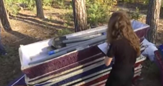 12 викопаних ям просто посеред лісу. І стільки ж трун, складених одна на одну. Тут же - покинуті рукавички, ритуальні подушки. Близькість цього місця до сусіднього кладовища селян ще більше насторожила. Вони викликали поліцію.У труні люди побачили лопати і труби, а в кожній кришці домовин були отвори. На місце прибули слідчі, працівники цвинтаря і керівник місцевої ритуальної служби. Каже, труни - не їхні.
