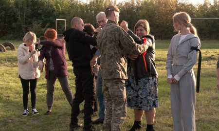 «Це рішення ухвалене доволі недавно, тому це мій перший тренінг, решта тренінгів вони доволі професійніші, але вони у Києві. Я доволі тверезо дивлюсь на свої фізможливості», – каже дівчина.Один із найстарших учасників навчання – 63-річний житель села Дачне Ігор Попович. Говорить: поки син на передовій, вирішив згадати військові навички, які отримав ще під час строкової служби.