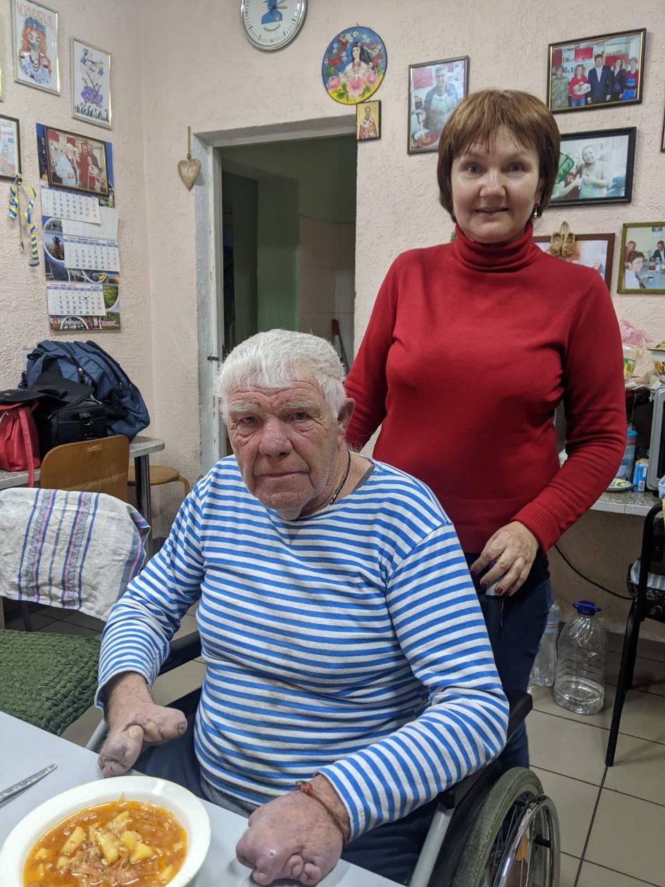 «Ми його перевезли у Запоріжжя «контрабандою», – згадує керівниця «Солдатського привалу» Галина Гончаренко. – Хотіли відправити у безпечне місце, на захід України. Та він вперся, що нікуди не поїде, буде тут продовжувати волонтерити. Мусили облаштувати йому помешкання».Наминаючи за обидві щоки, дядя Гриша хвалить борщ. Потім їде відпочивати, каже, що вдень відстояв «вахту» біля місцевого торгового центру, збираючи гроші на ЗСУ.