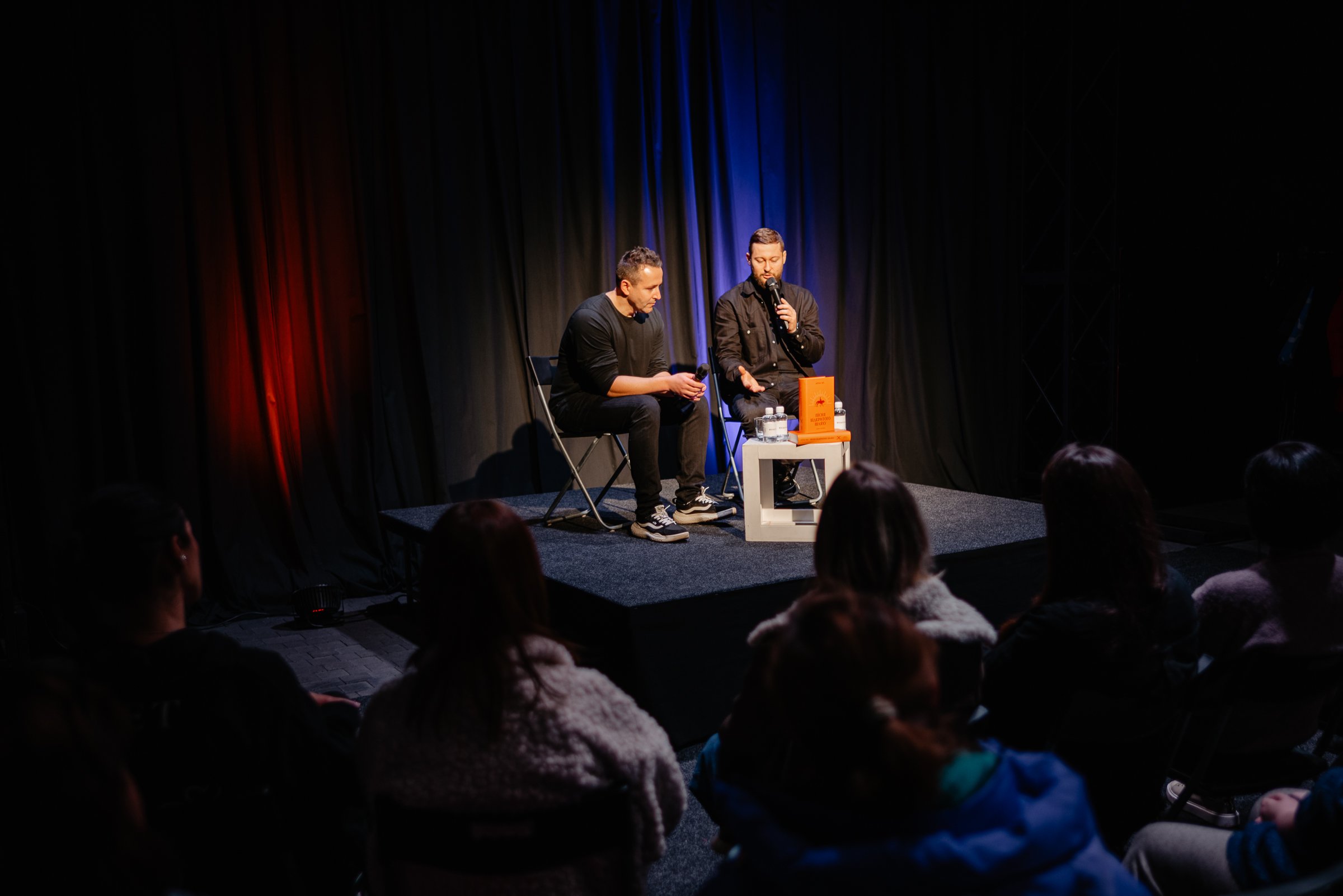 Розмову модерував Артем Албул – автор ютуб-каналу «Клятий раціоналіст». Зустріч видалася дружньою та ненапруженою, насиченою самоіронією автора, цікавими секретами робочого процесу та рефлексією сьогодення.