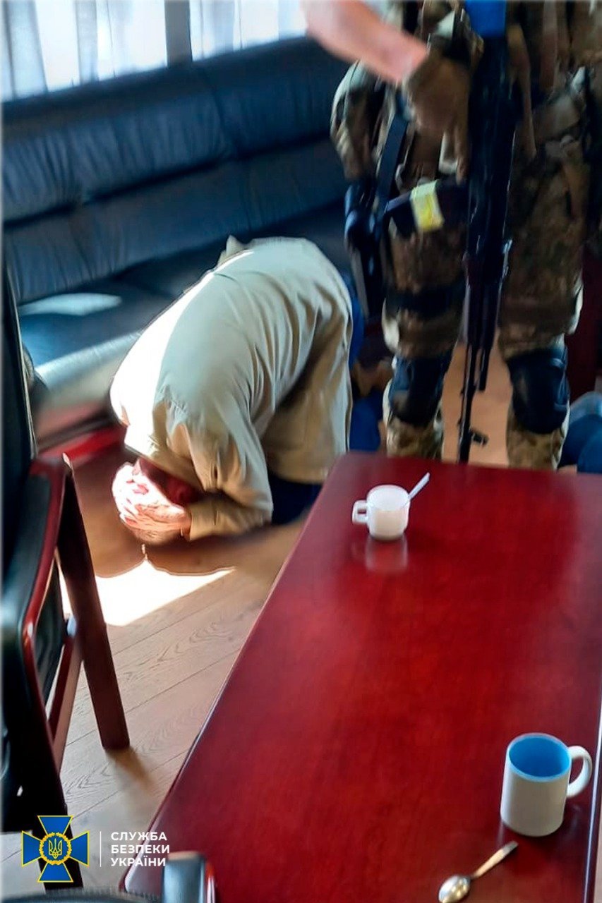 За інформацією «УП», йдеться про партію «Наш край». На фото, наданими СБУ, можна побачити характерну символіку у синьо-білих кольорах.