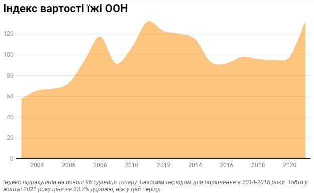Вже у 2021 році ціни на різноманітні харчові продукти у світі піднялися на 32,8%, за даними ООН. Зараз ціна продуктів на максимальному рівні за останні 60 років.Причини продовольчої кризи