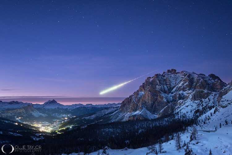 Водночас, фотографу із Великобританії Оллі Тейлору пощастило відзнімкувати це небесне тіло над засніженими Доломітами – на фото.